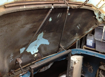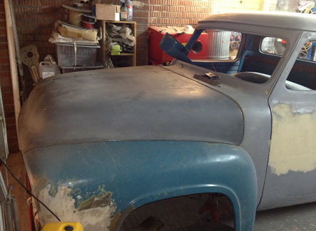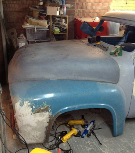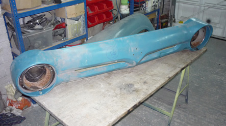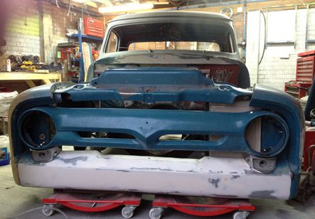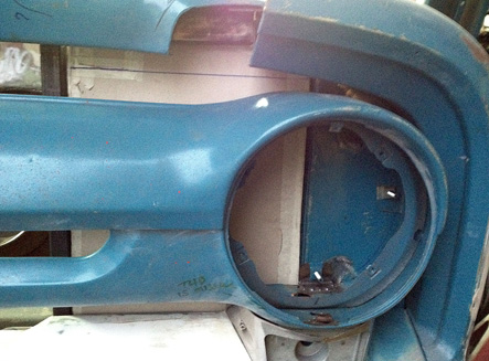 I was also concerned about the nose and the gravel pan, as they both had been worked on and were starting to rust. The nose was dented and twisted all over, and had some bad pitting where the emblem sat, and as I didn’t want the emblem on there anyway, I cut it out, shaped it flat and made a new piece.