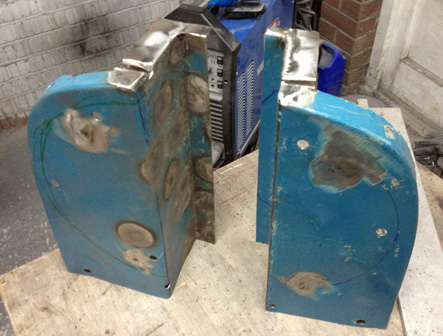 Haven’t updated the site for ages, but I’ve still been working away on the truck as often as I can. The running boards I got with the truck were completely rotten so I plasma’d the tops off them, screwed them to the workbench (well the kitchen worktop on two trestles that doubles as a workbench!) and cut new tops out of sheet metal. They were a good lesson on not welding too much at once or you’ll warp it… Which I did. So after cutting it back out and straightening it I took a bit more care. I also made new supports for them as the originals hang below the boards at the back, and they’ll just hit stuff. With some hidden fixings added I gave them a quick coat of primer to keep the rust at bay for a bit and put them on the "to do" pile.